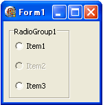 The above sample code disables the second radio button in RadioGroup1 as shown in the following image.